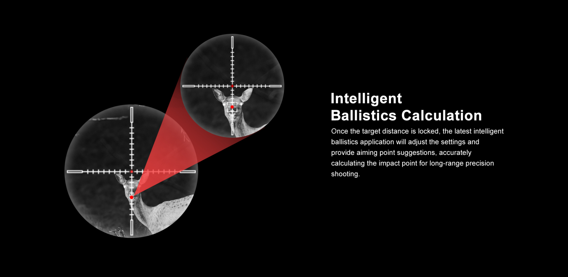 Long-range shooting requires more than just good aim — it requires calculation. The ME6-50L goes a step further with its automatic ballistic compensation system. It adjusts the aiming point in real-time, accounting for bullet drop based on distance — so your first shot is your best shot.